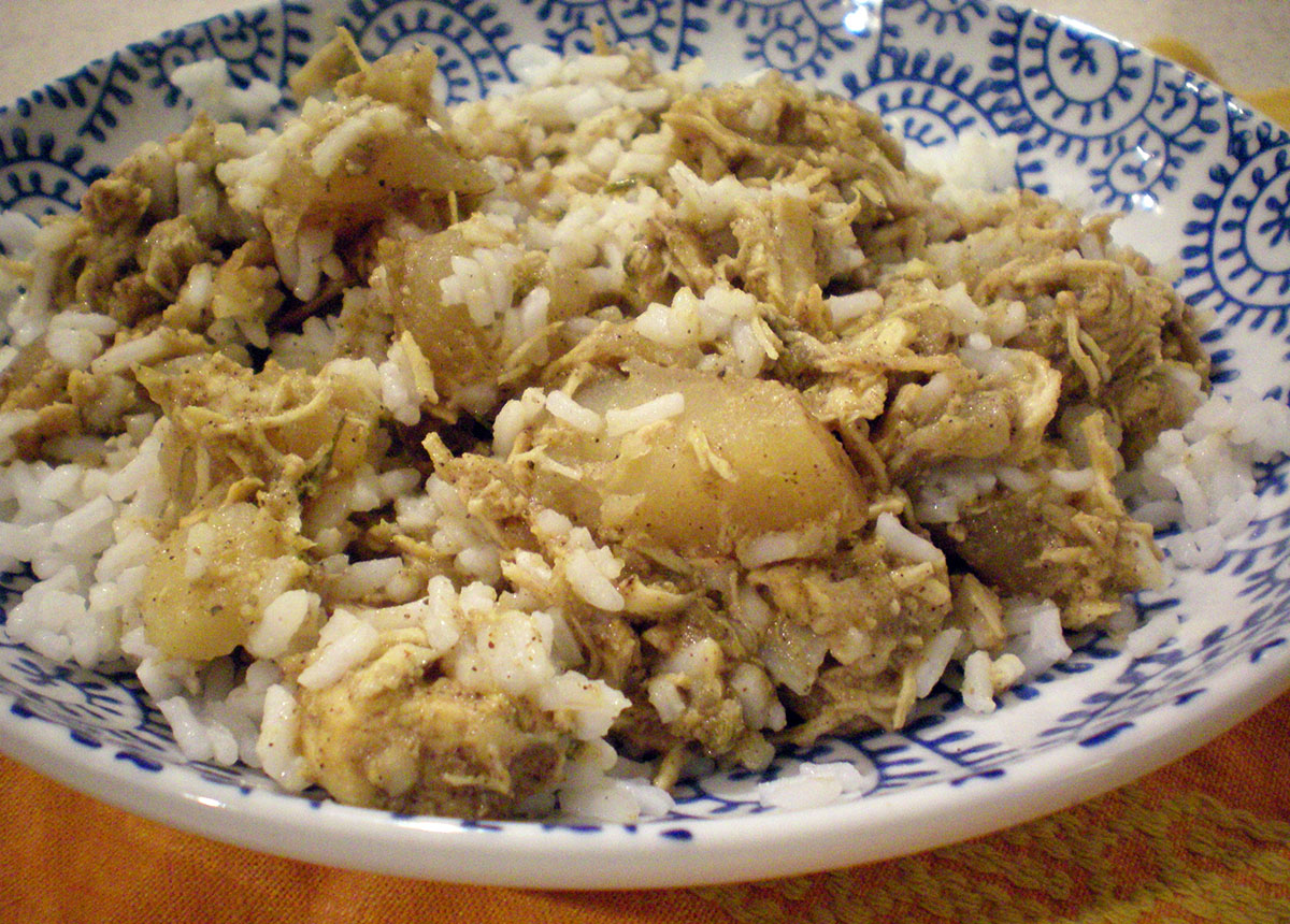 (This dish may also be cooked in a crock pot for 6 hours at the low setting. Remove the lid for the last 10 minutes while you make the rice!)