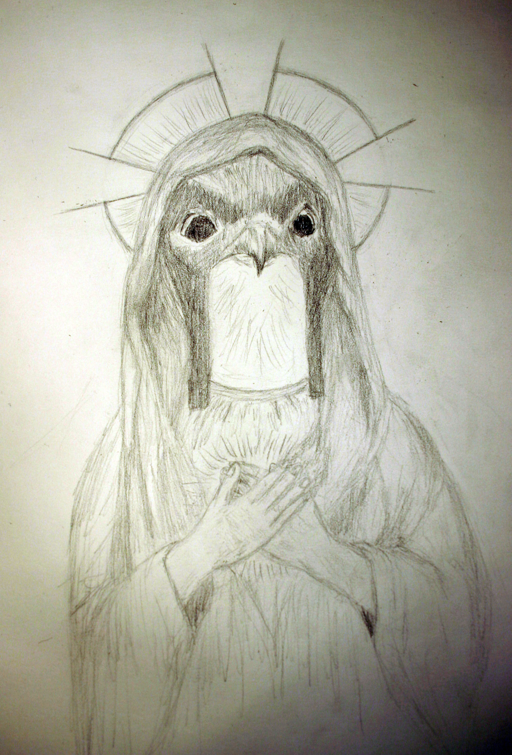 During the last moments of Savasana, a vision came into view: A falcon, cloaked in a veil as if it were the Virgin Mary. Instantly, I felt blessed to see such a sight looking upon me.